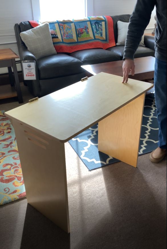 New Today we have this awesome folding birch desk from New England Woodcraft. Made right here in Vermont, this space saving desk is built for students and small spaces and has the ability to fold and store in a moments notice! Made of beautiful birch wood. 36" w x 18" d - INTRO PRICE AT 299