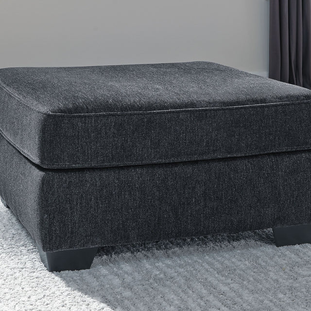 If style is the question, then this oversized accent ottoman is the answer. Clean-lined profile is beautifully contemporary. Plush chenille fabric and plump cushioning make it so easy to comfortably kick up your heels. Richly neutral hue complements a variety of decor.