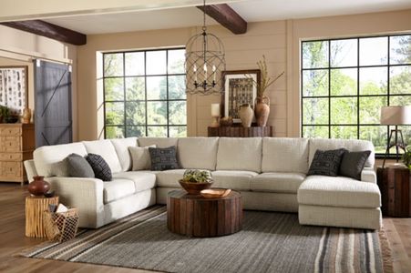 The Dovely Sectional is a transitionally styled sectional group, featuring loose back cushions and reversible seat cushions. Large track styled arms provide a modern feel, while the generous size of the Dovely sectional and premium cushioning provide the ultimate in comfort.Read More