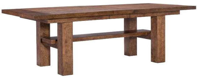 The main finish is the clean and refined vintage pine, accented by ironwood black bases and hardware. Cabinet fronts in the eclectic farmhouse design feature metal lattice grills on the doors. While some tables have chunky legs, others have tapered legs and urn-shaped bases.