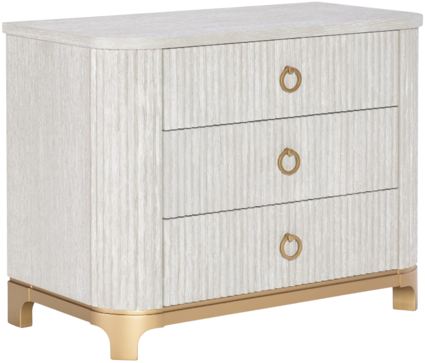 Featuring a serene oyster finish, this Miramar chest nightstand includes three spacious drawers, offering ample storage for nighttime essentials like books, glasses, and personal items. Its refined style and sturdy construction make it a versatile addition to any bedroom, enhancing your space with both charm and functionality.Read More