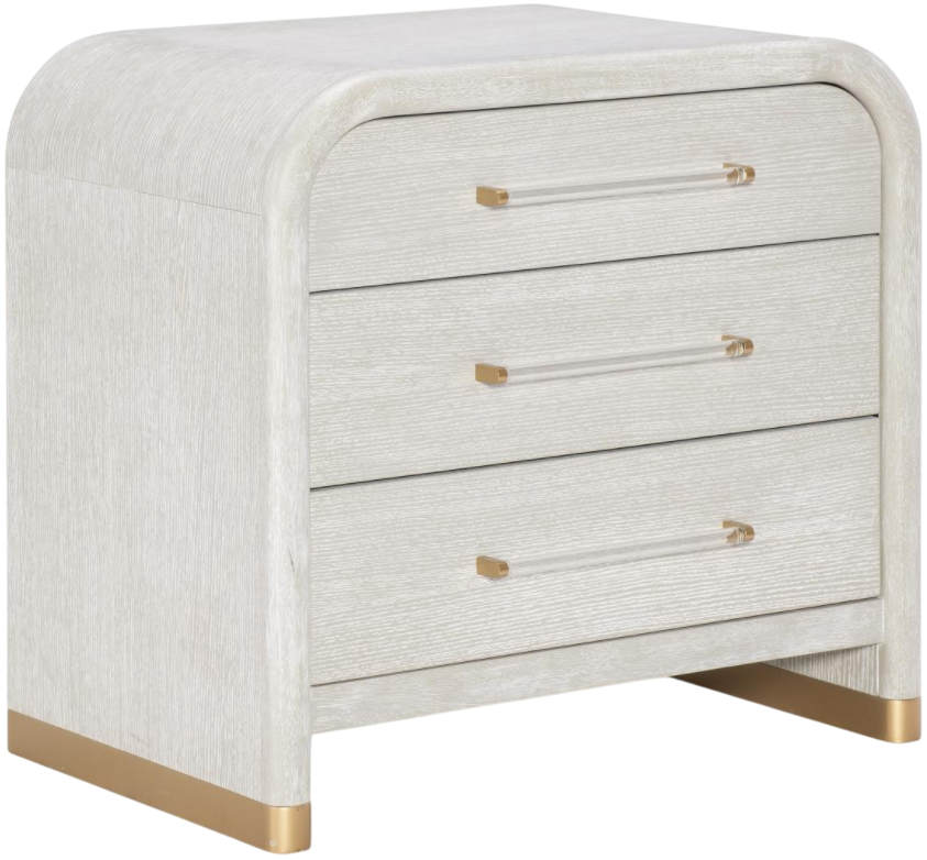Featuring a serene oyster finish, this Miramar nightstand includes three spacious drawers, offering ample storage for nighttime essentials like books, glasses, and personal items. Its refined style and sturdy construction make it a versatile addition to any bedroom, enhancing your space with both charm and functionality.Read More