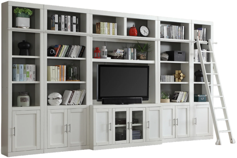 This entertainment wall has the perfect mixture of storage and fun. Place your TV in the middle of your display and storage bookshelves. Show off your style and entertain with class with this 7-piece small entertainment wall.Read More