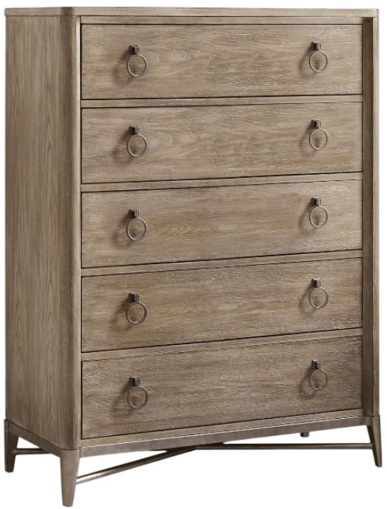 The Riverside Furniture Sophie Natural Chest is a stylish piece made from hardwood solids and oak veneers. It features clean lines, a natural finish, and five drawers with dovetail joinery, offering both durability and ample storage space.Read More