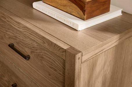This 6-drawer dresser is a blend of rustic lumber and modern lines. Showcasing the knots and bold grain patterns that are unique to white oak lumber. Featuring a unique stretcher across the bottom and custom hardware.Read More