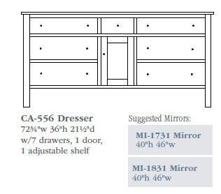 | 72" Dresser w/ 7 drawers, 1 door & 1 adjustable shelf | ||||