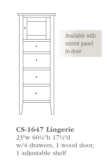 Lingerie Chest w/ 4 Drawers, 1 Beveled Mirror or Panel Door, & 1 Adjustable Shelf