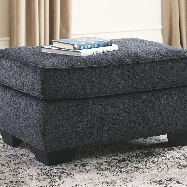 If style is the question, then this ottoman is the answer. Its decidedly contemporary profile is enhanced with plump cushioning and a chenille-feel upholstery, so pleasing to the touch. Rest assured, this ottoman in slate gray is sure to play well with so many color schemes.