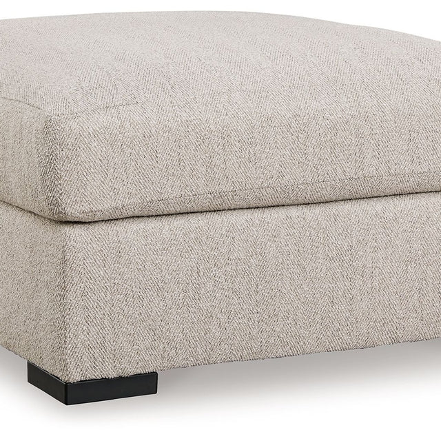 Reminiscent of a fine, subtly patterned herringbone jacket, this casually elegant ottoman offers contemporary style in spades. Its oversized silhouette provides plenty of leg room, while a soft feather-blend top cushion maximizes relaxation. Why skimp on comfort and style? With this ottoman, you have plenty of room to rest your feet and unwind.