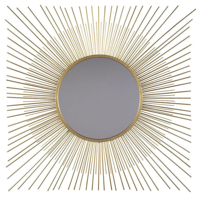 This accent mirror is a contemporary musing. Breathtaking sunburst design shines in goldtone metal. Beautifully large scale makes this piece the center of attention.