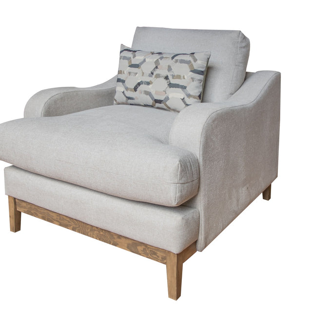 - Alfa collection. Designed with a soft and casual silhouette accented by curved arms and solid wood legs, with beige fabric tone, it pairs effortlessly with any home décor.