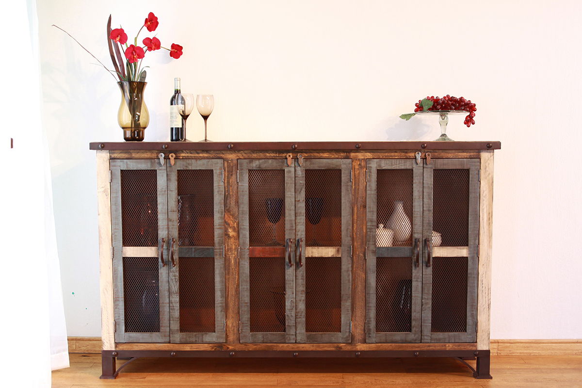 71" Console w/6 Iron Mesh Door Panels & Middle Shelves