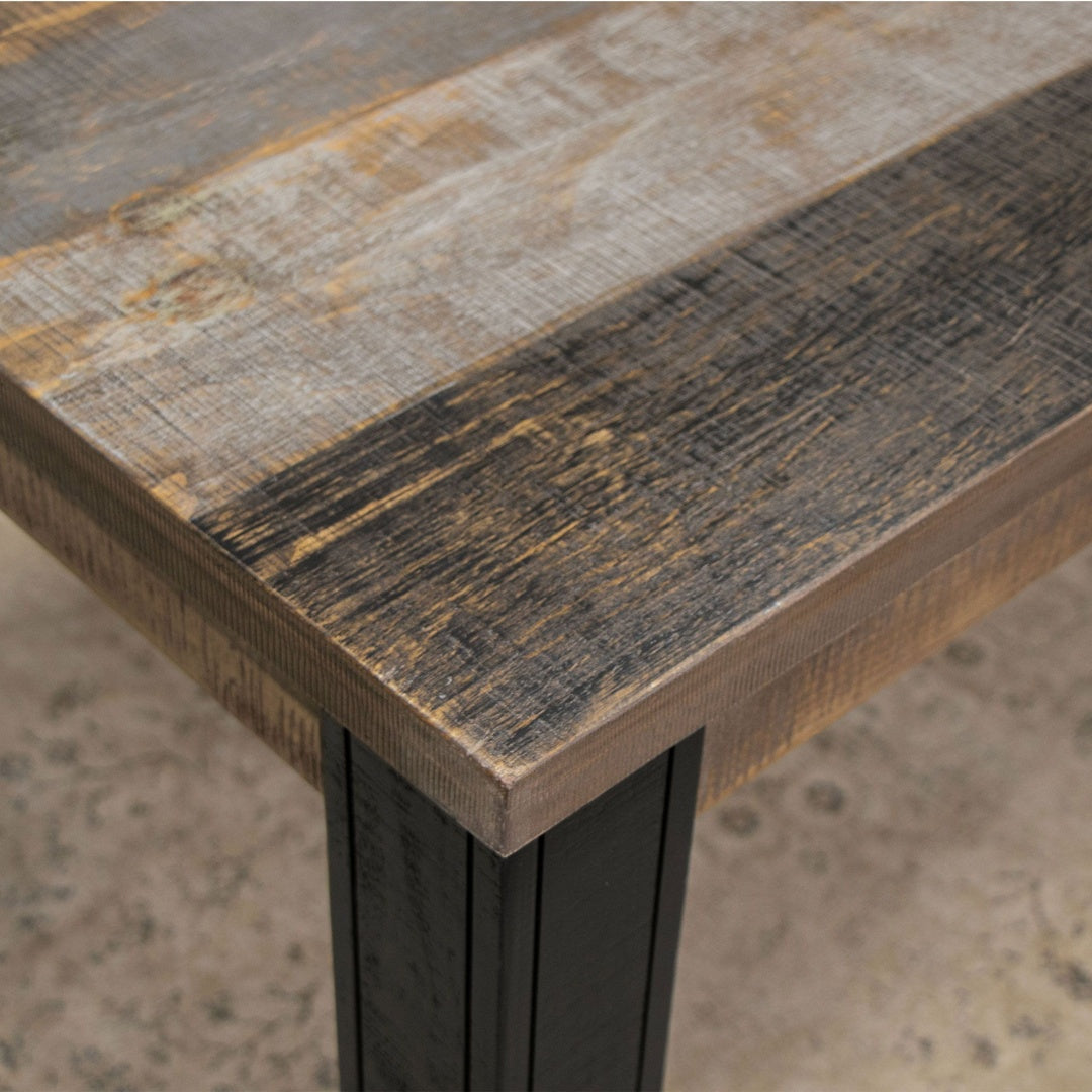 - This collection boasts an exclusive tabletop construction with 1/4" solid wood planks on engineered boards to prevent seasonal cracks.