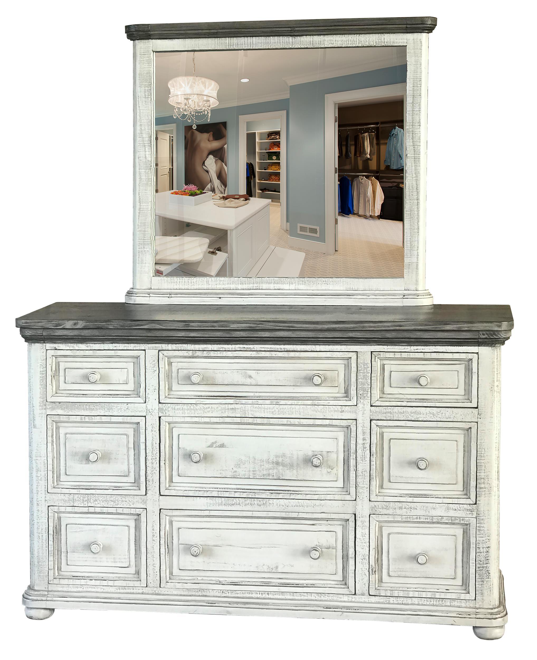 - Upgrade your storage space with this beautiful two tone dresser. With 9 spacious drawers, you'll find it the perfect place to keep your wardrobe or special keepsakes. Offering a rustic, yet transitional feel, this dresser can pair well with many bedroom decors. Place it in your master or guest suite for a touch of style that will make all the difference.
