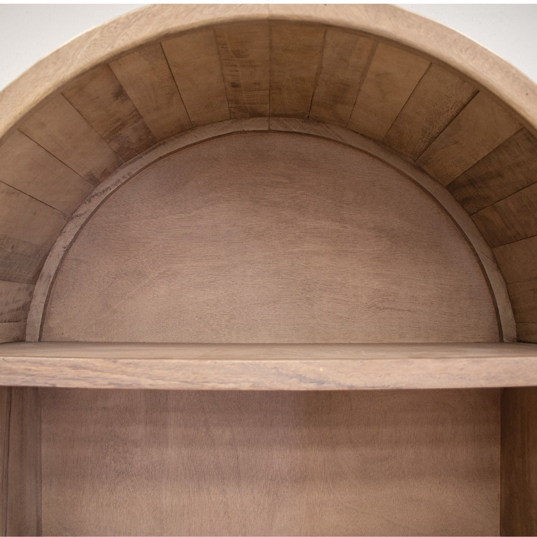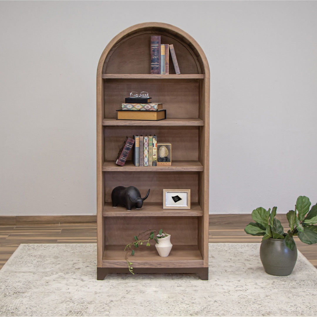 - The Natural Parota bookcase stands as an exquisite furniture piece, elevating the ambiance of both living rooms and office spaces. Its gracefully arched design exudes an air of elegance, leaving an indelible impression. With its organic aesthetic, it seamlessly complements various home decor styles and color palettes