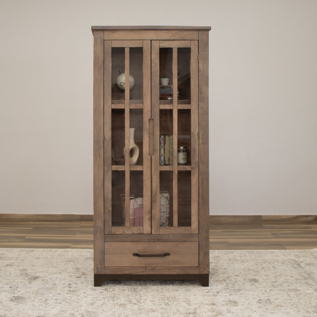 - This vitrine cabinet is perfect option to store and display books, photos, collectibles, trophies, and silverware. This timeless functional unit can be placed in the living room, dining room, bedroom, and office. The Natural Parota cabinet exudes sophistication and timeless elegance, effortlessly enhancing the aesthetic of any room. Its striking presence is guaranteed to leave a lasting impression.
