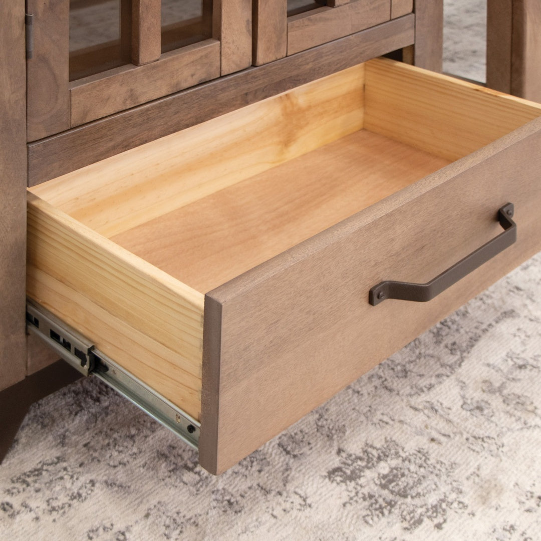 - One drawer. Metal custom pulls with non-chip finish. English dovetail on 100% solid wood drawer fronts. Ball-bearing metal glides