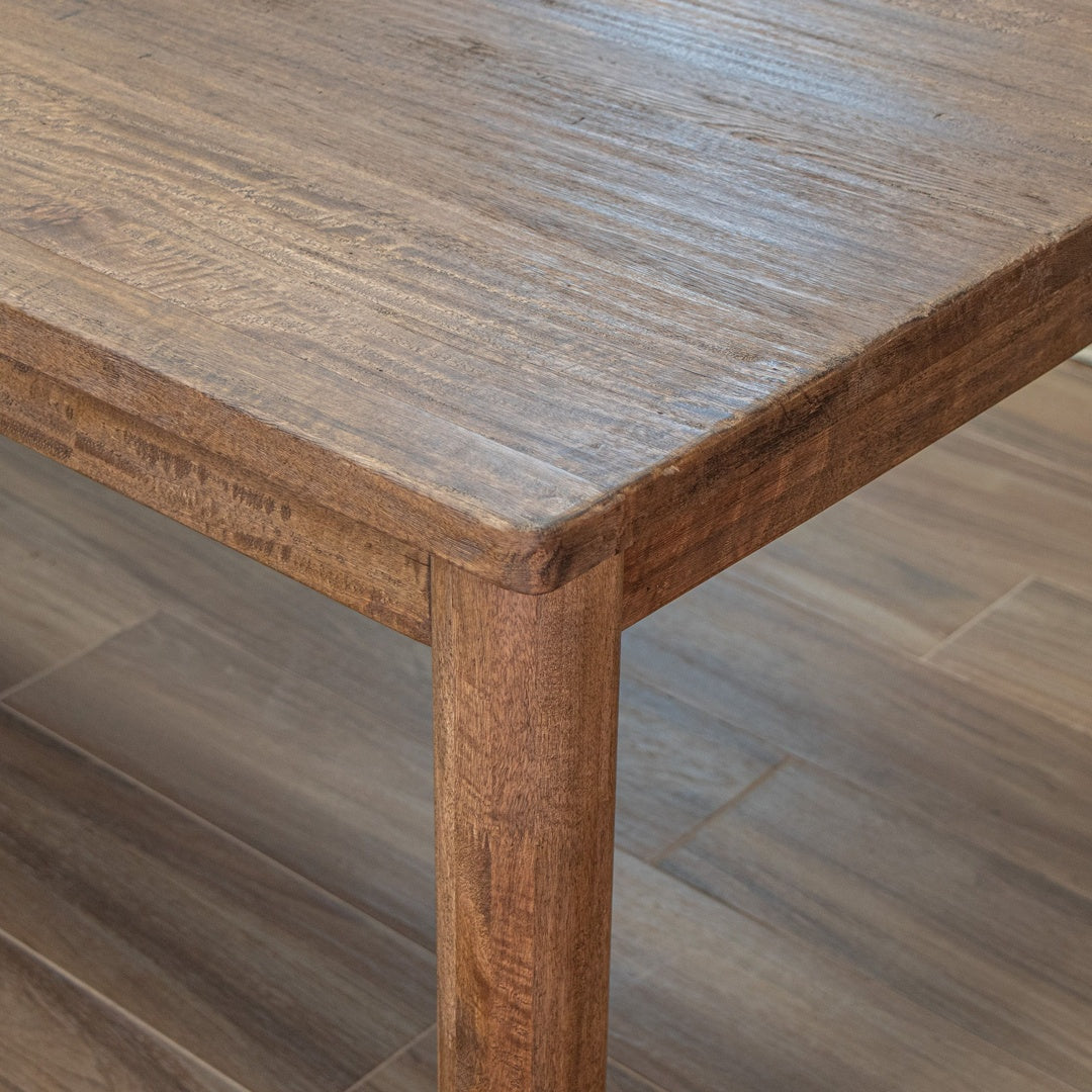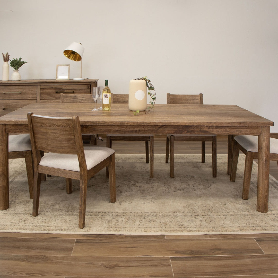 - Indulge in the epitome of sustainability and elegance with our exquisite sustainable solid Mango wood dinner table. This exceptional piece of furniture is not just a table; it is a statement of your commitment to eco-conscious living and your appreciation for fine craftsmanship. Crafted from the finest Mango wood, known for its durability and rich grain patterns, this dinner table will transform your dining space into a haven of sophistication and style. As you gather around this table, you will immediately sense the aura of prestige and refinement it exudes. Its design, reminiscent of our esteemed Olimpia dinner table, reflects the perfect harmony between minimalism and timeless elegance. The table's sleek lines and natural variations in the wood grain, expertly crafted, are a testament to the meticulous attention paid to every aspect of its creation and its uniqueness.