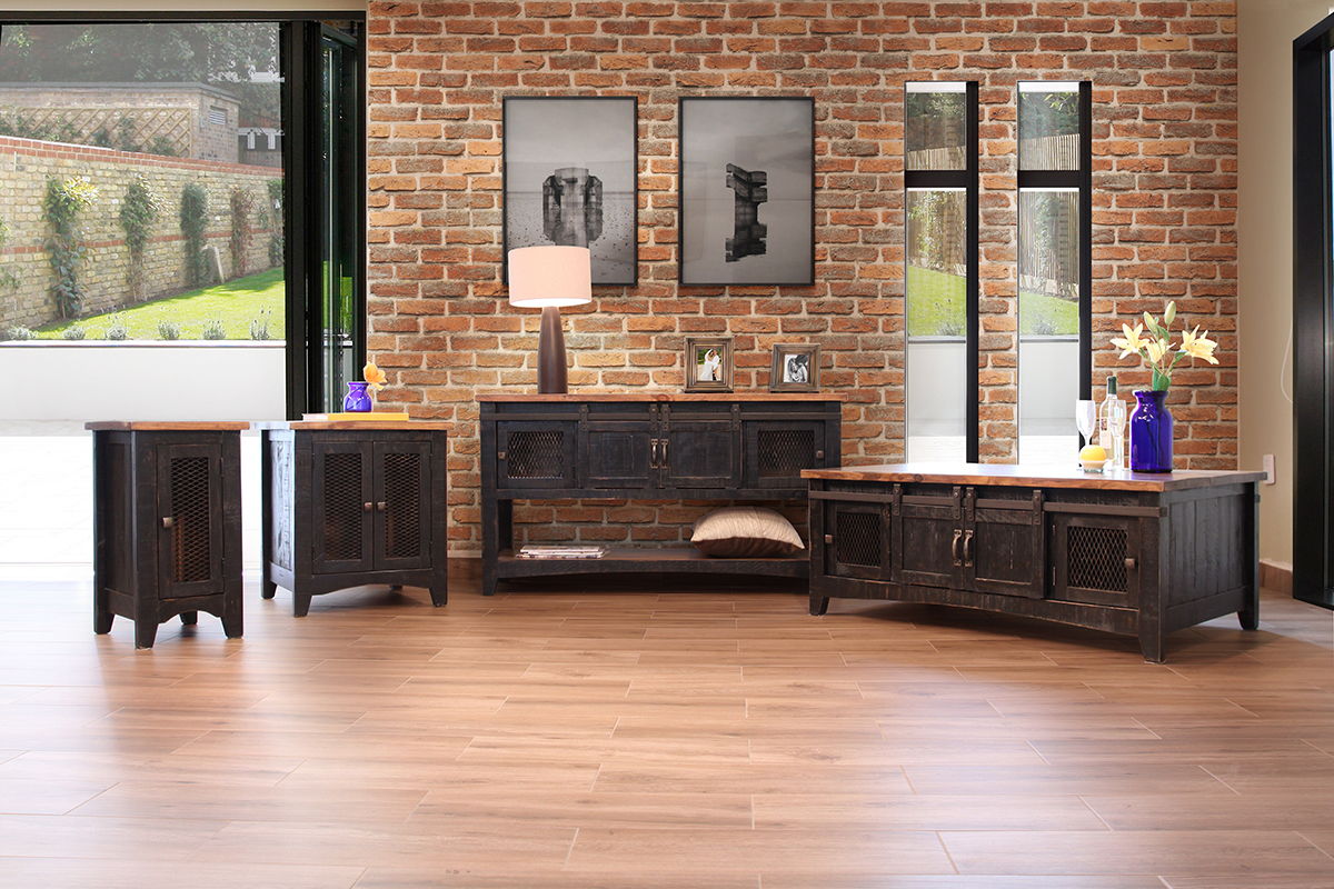 - With a lovely distressed finish and medium brown on top finish The Pueblo Collection is constrcuted in solid pine wood.