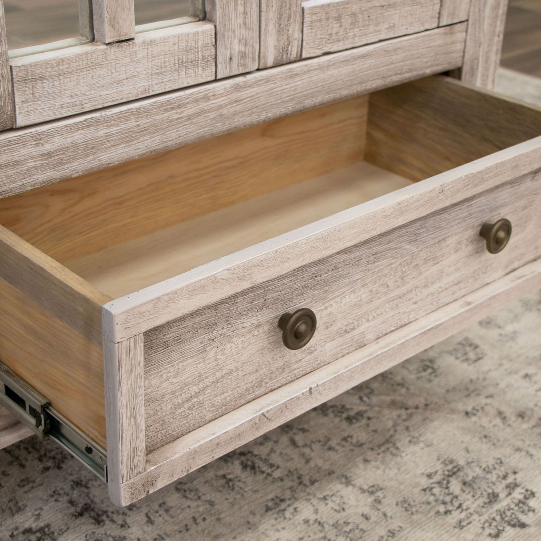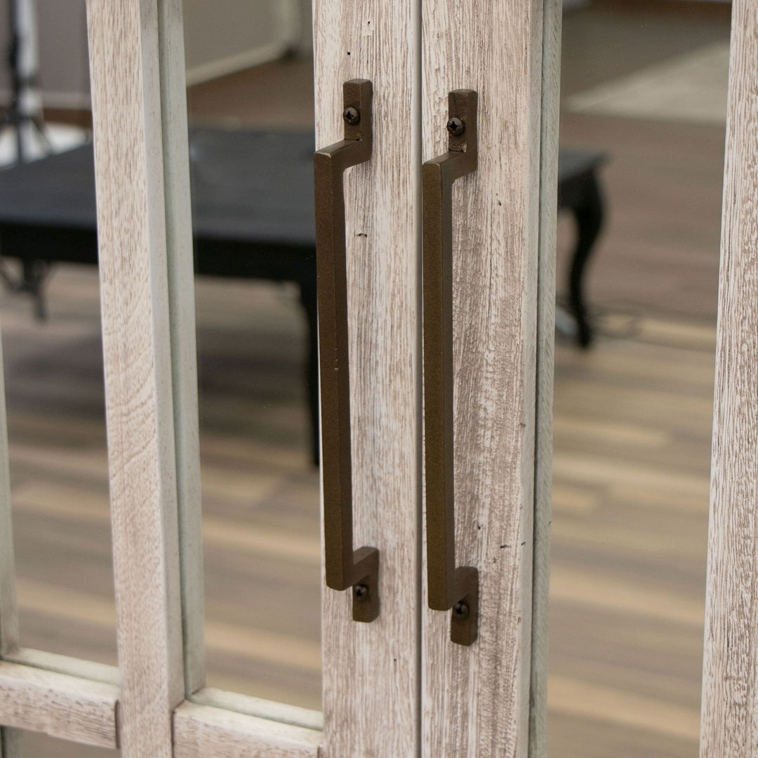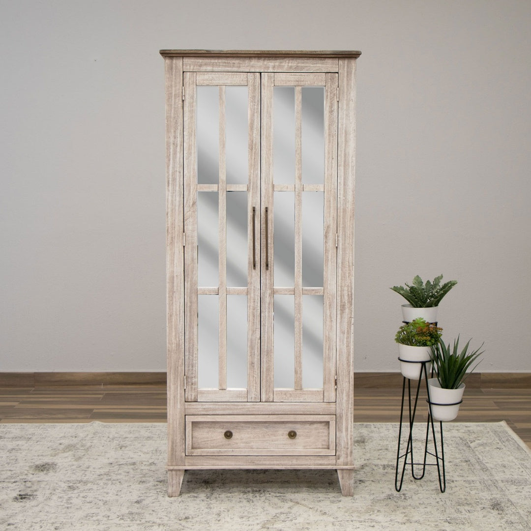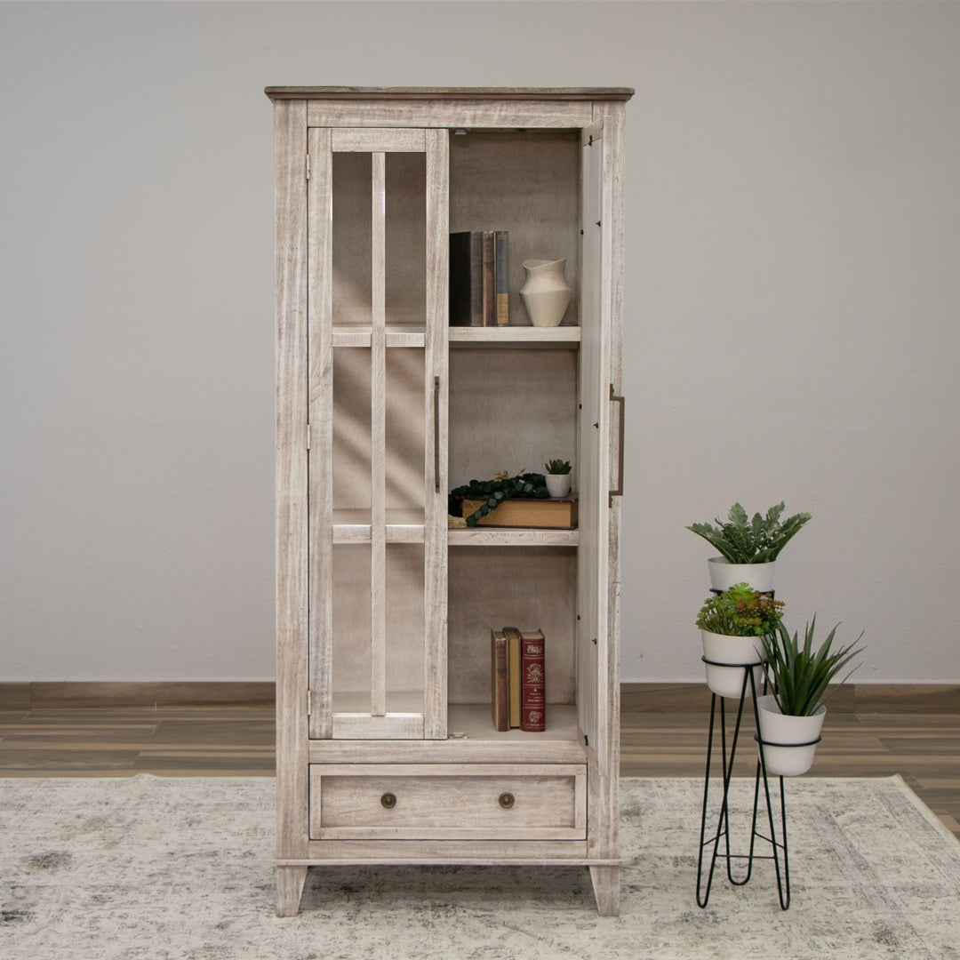 - The Sahara cabinet is both stylish and functional, with glass doors that allow for a display of your items.