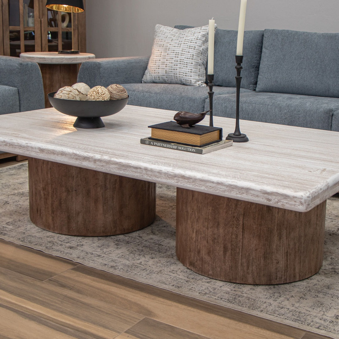 - Elegance and sustainability converge in the Sahara Occasional Tables, a testament to meticulous craftsmanship. These tables are exclusively fashioned from the resilient and eco-conscious mango wood, ensuring both durability and a responsible choice for the environment. A wire-brushed, multi-step lacquer finish in a captivating Caramel hue graces these tables, while the tops boast a Cream finish. The contrast between the warm Caramel and the pristine Cream enhances the visual appeal, creating an inviting and harmonious aesthetic. Adding to the allure is a beautifully hand-carved base, meticulously designed to captivate anyone's attention. This intricate detail infuses the Sahara Occasional Tables with a touch of artistry, elevating them beyond mere furniture to works of functional art.