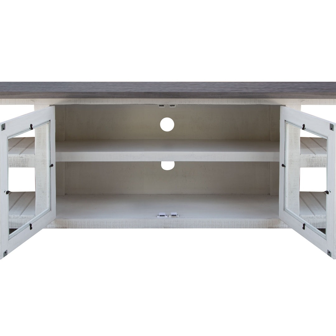 - Two-tone, multi-step lacquer finish. Tops feature a weathered gray finish on hand-distressed wood and an ivory finish on the rest of the case pieces.