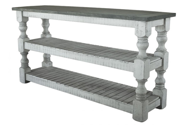 - Every home can benefit from an accent occasional table. Two toned and gorgeous in design, this sofa table will work well in many areas of your home. Place it behind your sofa to have an extra viewing spot of the TV while adding a tray of treats for your guests to snack on. Beautiful carved detailing on the legs makes this piece unique and stylish while solid wood makes it durable and long lasting. Featuring two shelves under its surface, you'll find it the perfect place to stack extra books or magazines while keeping the space clean.