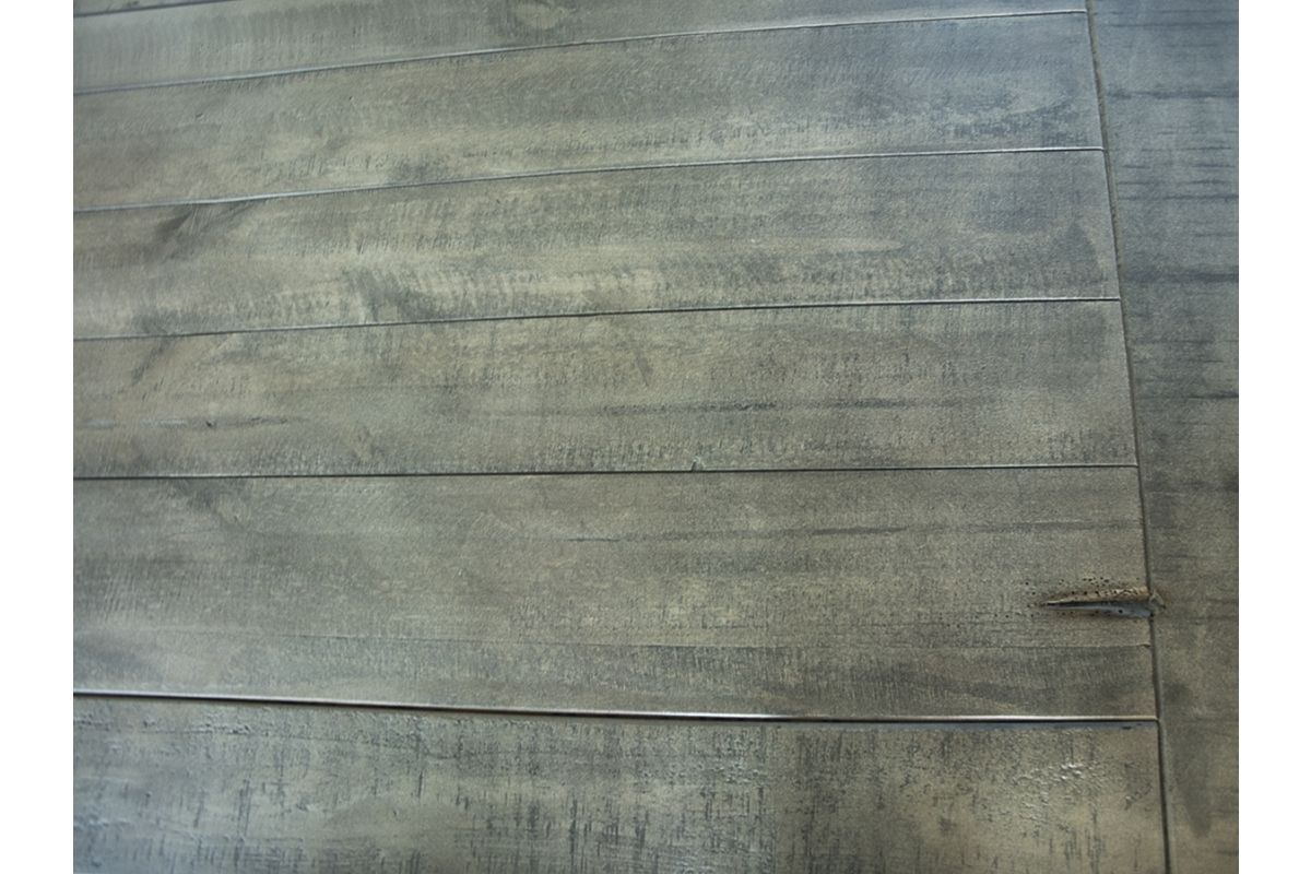 - Two-tone, multi-step lacquer finish. Top features a weathered gray finish on hand-distressed wood and an ivory antiqued finish on the rest of the case