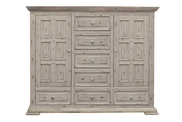 - The Terra White Collection is constructed in solid pine wood. This chest blends traditional and rustic designs, creating a unique and stylish piece.