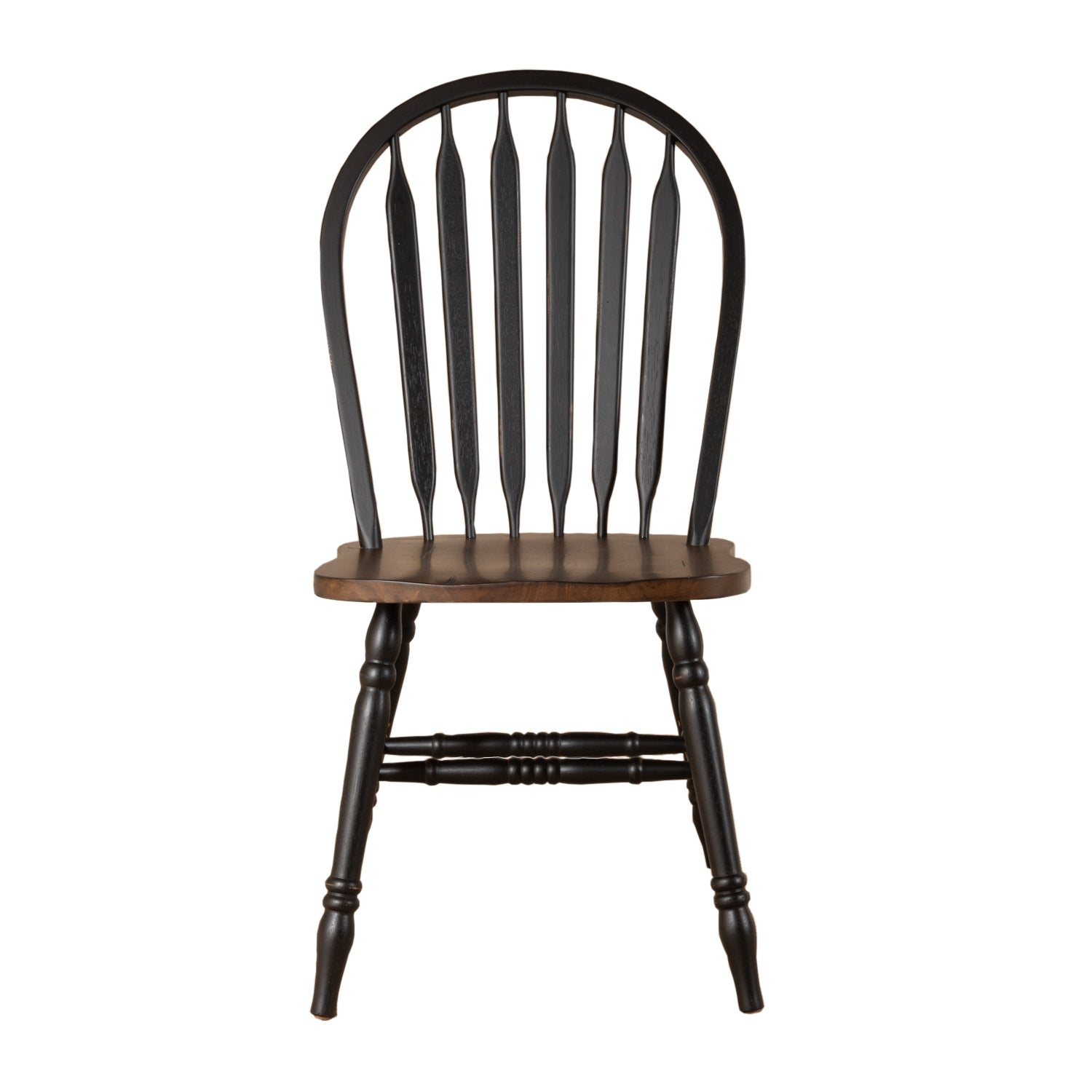 Sit in comfort and style with the Carolina Crossing Windsor side chair in black. Crafted of rubberwood solids, this piece features a two-toned black and honey finish, nylon chair glides to protect your flooring, and is anchored by turned splayed legs. This chair is available in multiple finishes and the heavy distressing translates well into any decor.