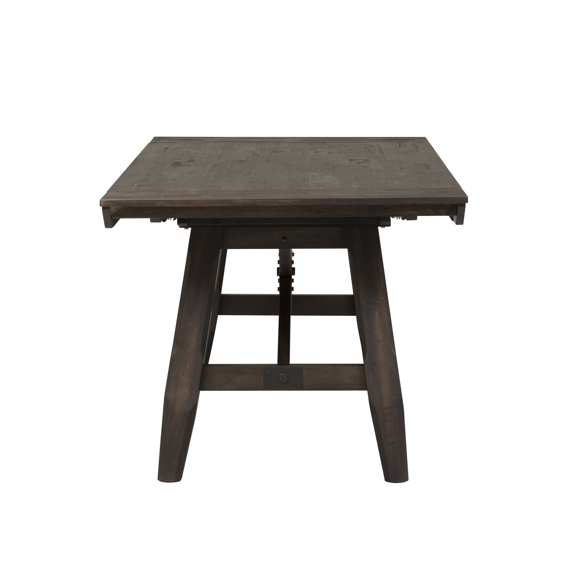 Gather the family around the Double Bridge optional 7-piece trestle table set, consisting of a trestle table, and six upholstered side chairs. Crafted of rubberwood solids and acacia veneers, this kit features a dark chestnut finish with wire brushing. The table offers two 12-inch leaves, one for each end of the table, to accommodate guests or a larger family, and an easy glide track system for added convenience. The chairs feature grey linen upholstery, tapered legs, and nylon chair glides to protect your flooring. The Double Bridge Dining defines the rustic side of casual. The sleek design is optimal for any space.