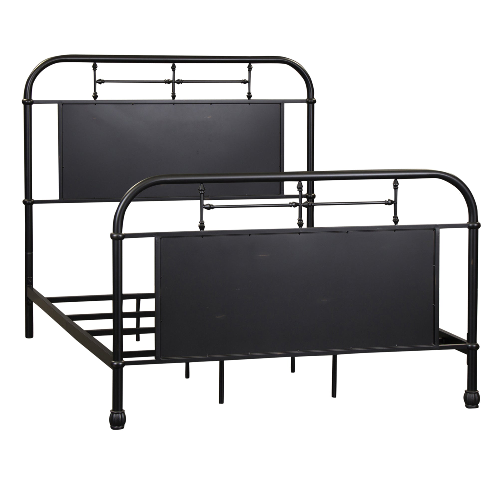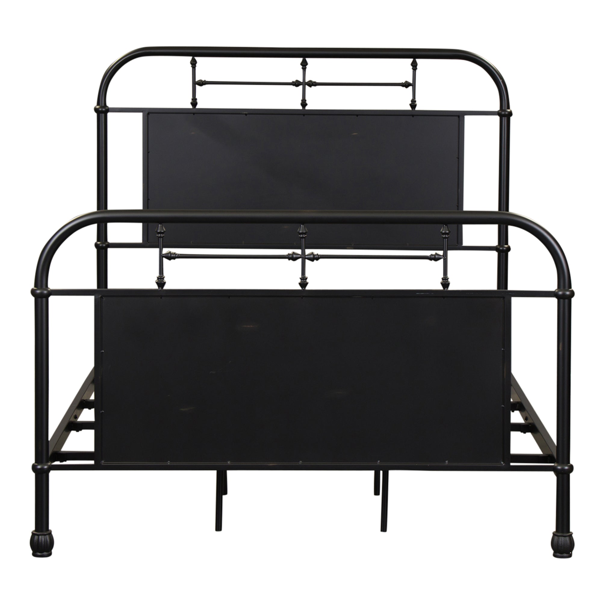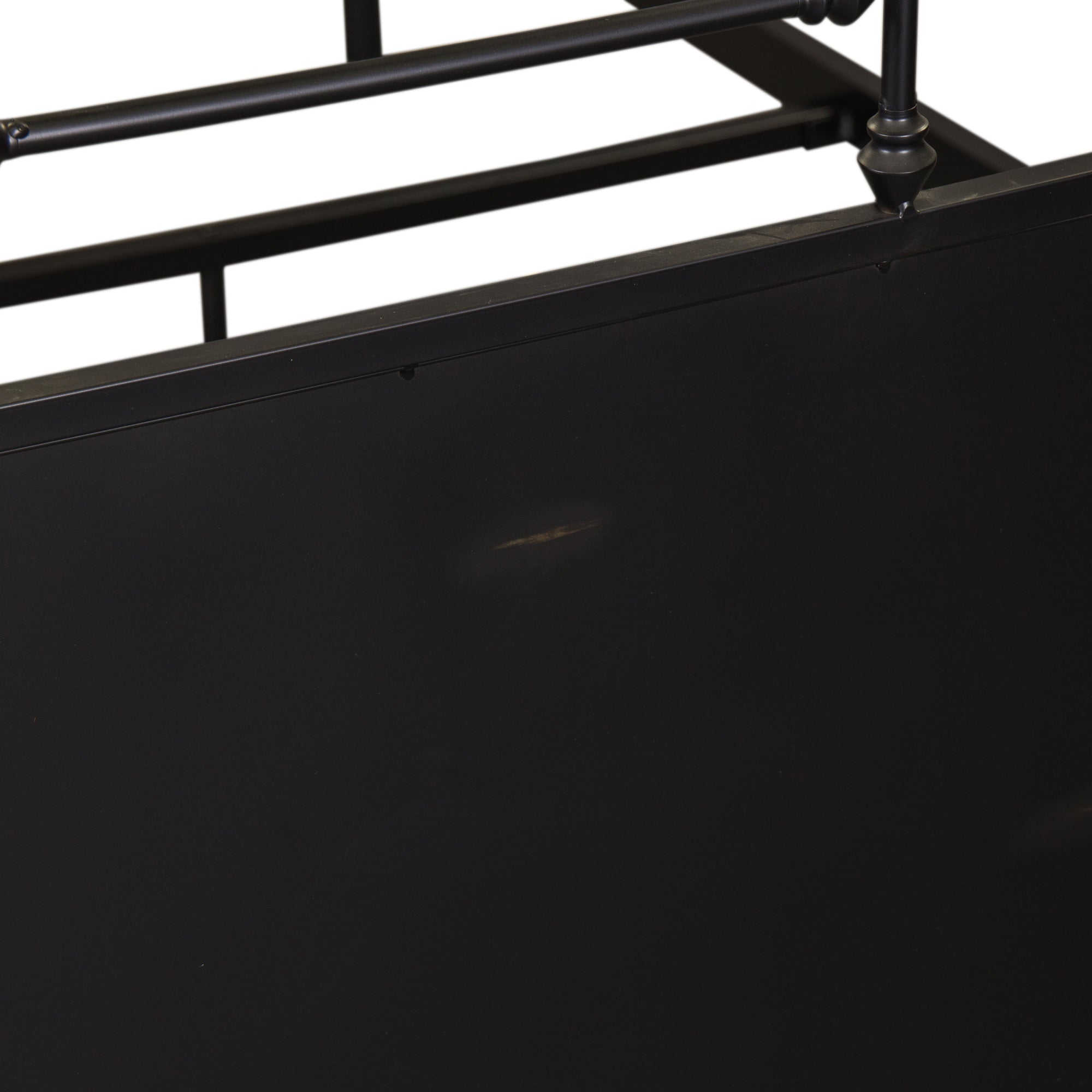Add a unique look to your home with the Vintage Series Full Metal Bed. Crafted of metal tube and finished in a beautiful antique black with wear thru. The headboard and footboard feature a softly shaped cap rail and turned metal spindles highlighting a center panel. The metal side rails and bed slats are finished in the antique black with wear thru. The Vintage Series headboard will work with a metal bed frame making it perfect in small spaces and any decor from cottage to farmhouse.